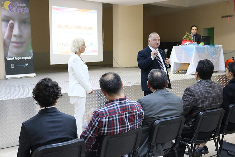 “Okulumda Günışığı” proje uygulamasını 16.10.2018 tarihinde Ordu Meliha Lütfü Türkmen İlkokulu‘nda tamamladık. Azıcık ışığın peşinden koşan az gören çocuklarımız dair, “Okulumda Günışığı Eğitim Semineri”ne yaptıkları anlamlı katkı ve ev sahipliği için, Ordu Vali yardımcısı sayın Turgut Subaşı, İl Milli Eğitim Şube Müdürü sayın Ahmet Tuncay, Meliha Lütfü Türkmen İlkokul Müdürü sayın Hasan Tomakin ve tüm öğretmenlerimize teşekkür ederiz.